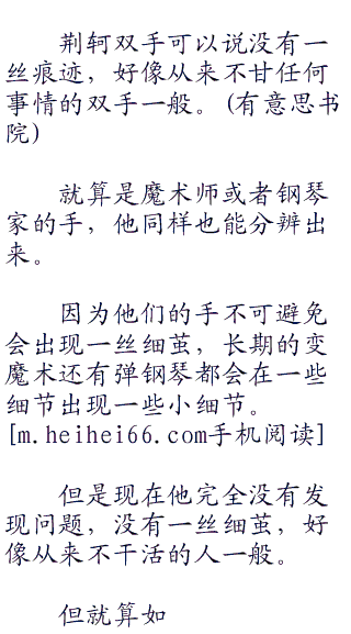 心中却16充满了浓浓地疑惑,他从荆轲的外表竟然完全发现不了任何的踪迹。