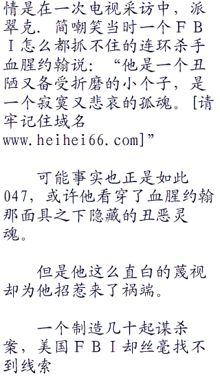 “你好!我叫派翠克.简!cbi调查局的顾问!”派翠克.简友好地伸出了手。