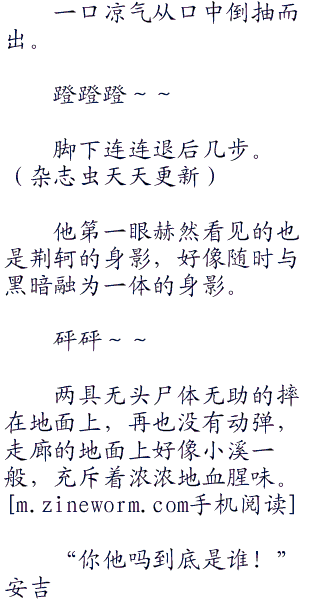 其他人被这种血腥的场面镇住,但两位保镖没有,一脸凝重的看着两具无头尸体身后的那个高大幽暗的身影。