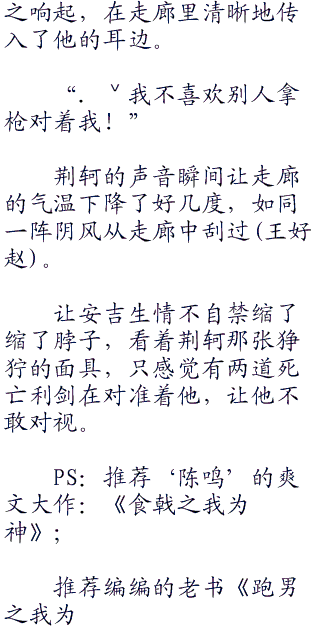 在走廊中非常的清晰,安吉生的两个保镖第一时间快速回头,警觉的回头看着。