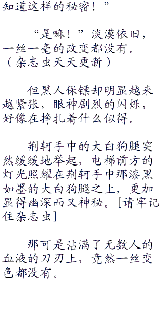 荆轲的脚步突然戛然而止,让这个黑人保镖表情一喜啊!