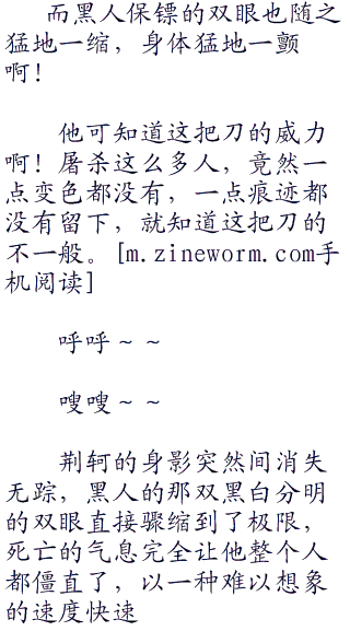 一步!一步!和地面发出的声音都让黑人的保镖的心脏紧紧一缩,头上的汗水不停地增加着,越来越快!