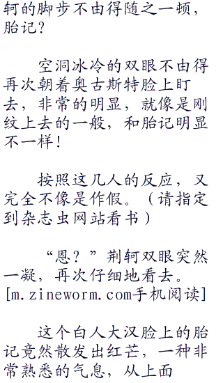 “我们老大这是胎记,不是纹身!”奥古斯特还没有说话,已经有小弟直接帮忙说了出来。