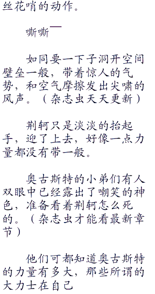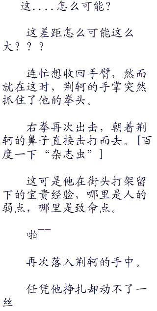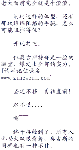 荆轲脸上不由得浮现出诧异之色,根本没想到这个叫奥古斯特的白人想和他动手。