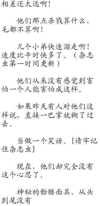荆轲继续走向已经被这一幕吓得胆战心惊的血帮弟子面前。