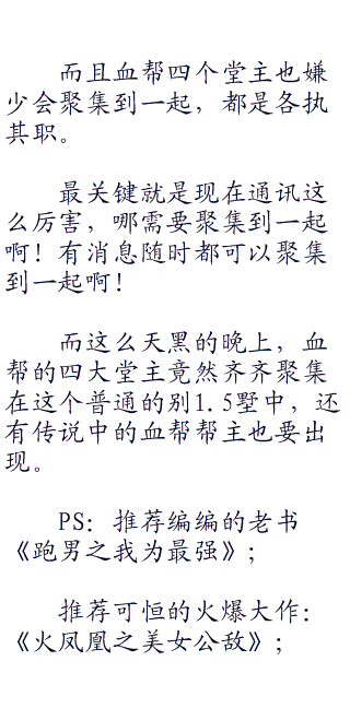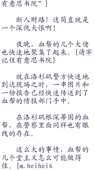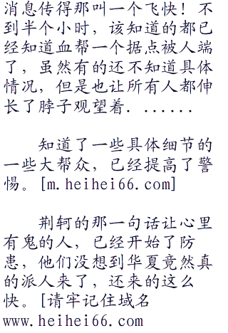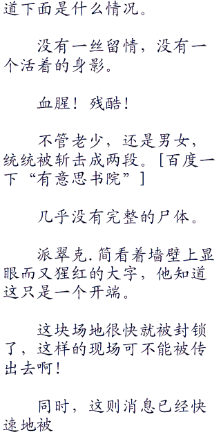 因为这个据点就是派翠克.简提供的,而墙上留下来的血淋淋的这句话,不就是表明了这个屠杀只是一个开始而已!在警示着某些人,让他们洗好脖子等着。