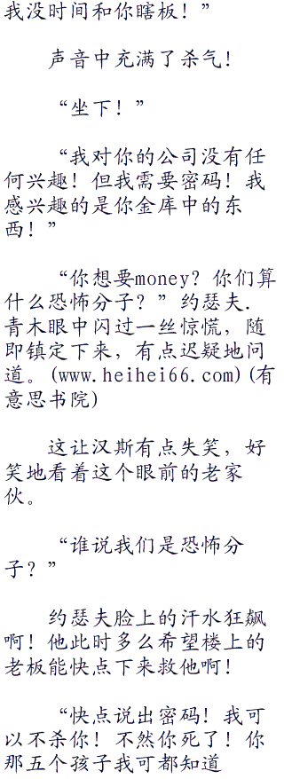 随即好像想明白了什么一般,“你们只是为了公司机密资料?这没用的,明天里面的一切都会被更改,你根本无法勒索我方高层威胁或者敲诈...”