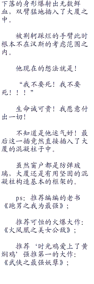 也不管现在双臂是什么状况,整个人的身体猛地一绷直,硬生生朝着大厦靠近了一
