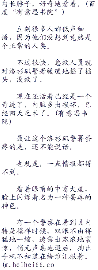 “还活着!快!快过来!紧急救护人员,你们吃屎的嘛!”这个巡警也不是什么好脾气的人啊!