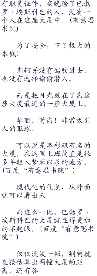 但那四周的红外线表示围绕着的都是监控摄像头,白天就算进入大厦也必须