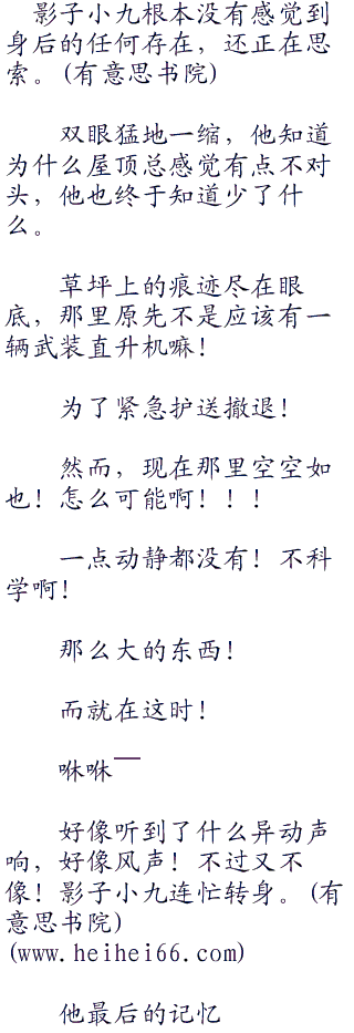即使在一百多米的高空中,影子小九也没有感觉到一丝微风,一切都太诡异了。