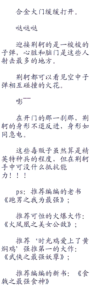 “诶~~我总是这么仁慈!”一声细语的呢喃从荆轲的口中发出,带着一丝感慨,还有一丝说不出的悲天悯人,就像