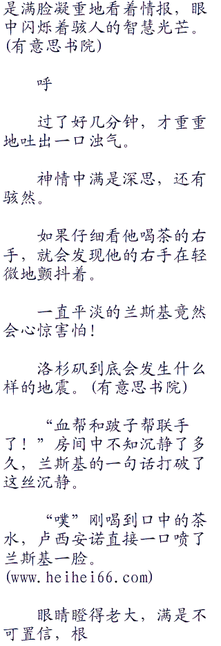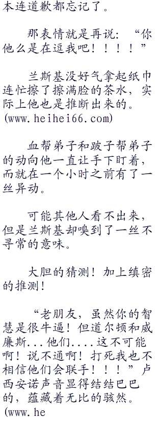 几乎没人知道血帮帮主和跛子帮帮主,两大传奇帮主,在一个贫民窟中的一个小茶馆达成了结盟。