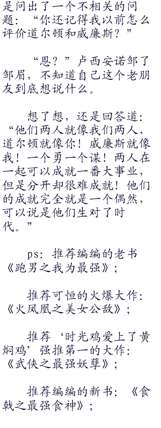 两人一下午聊了好多,很多的感慨,还有两人在几十年后终于第一次选择了联手。