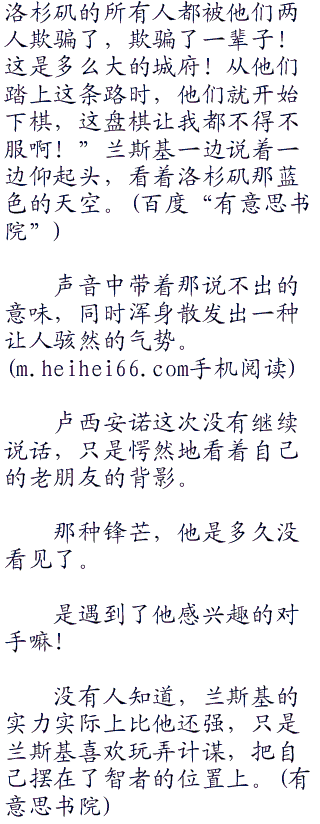 卢西安诺当然不知道兰斯基想的是这个,眉头皱的更深了,满是纠结的神色,和聪明在一起说话就是累啊!