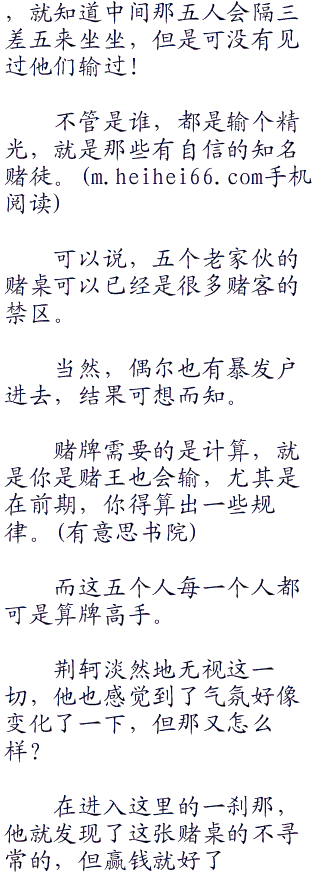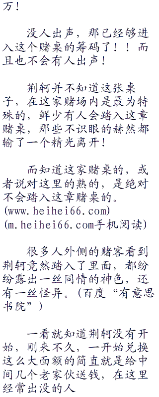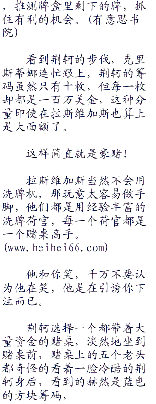 荆轲并没有把这些事情放在心上,淡然地看着一个个赌桌。