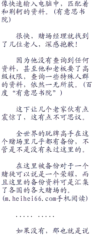 呆立的他们还把思想留在荆轲那最后的一副牌上面,就是那么轻易的来了个大逆转。