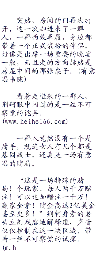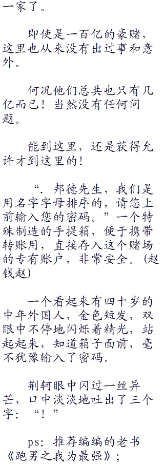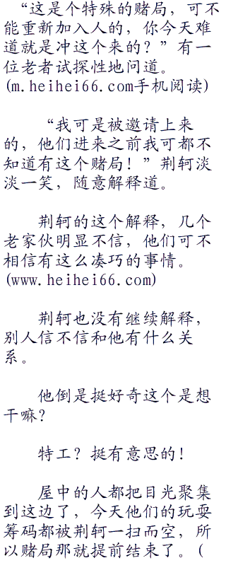荆轲依然和开始一样,脸色更是一点变化都没有,有一句没一句的搭理着五人。