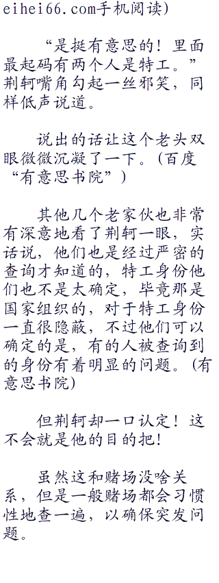 这种见识在一个四五十岁的位高权重的人身上很正常,但是在荆轲这样年轻的过分的身人,太过惊人了啊!