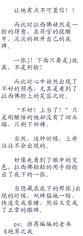 但是这样的几率非常之下,再加上拉西佛的表现,诈牌!
