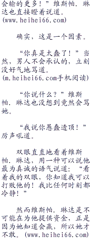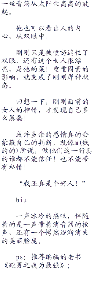 “我不能给你!詹姆斯!”维斯帕.琳达却给了否定的答案,眼睛却不敢正视,同时闪过了一丝哀伤。