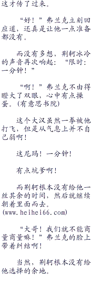刚刚他只看到荆轲的身形快速出了电梯,就连忙抬脚跟了出来,谁知道会发生这个啊!