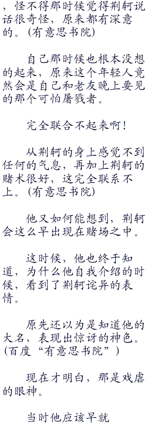 “啧啧~~你这记性!”荆轲冰冷的声音中带着一丝浓浓地戏虐。