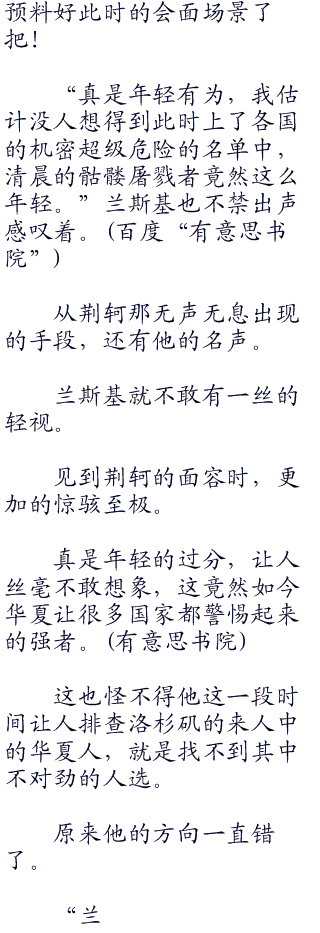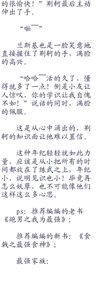 但荆轲明明在兰斯基这货的眼中看到了还是你了解我的意思。