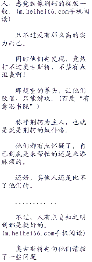 “是嘛!”荆轲挑了挑眉,对于他来说,这些还真不是帮手,简直就是一批累赘。