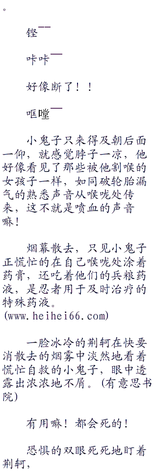 “真他么的是垃圾!这就些雕虫小技!”荆轲冰冷的声音,带着嘲笑的话语在空气中响起。