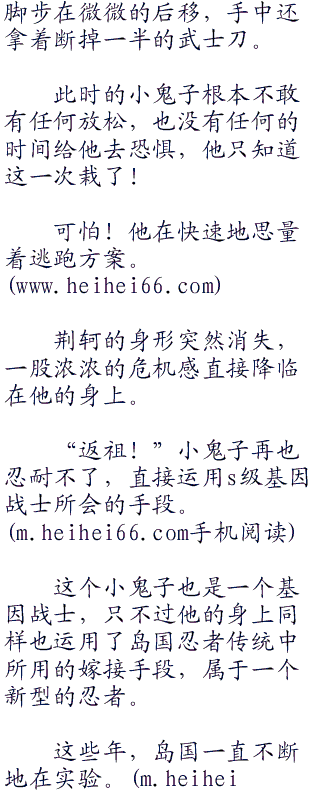 “八嘎!什么人?”一把快速抽。出床边的武士刀,身上快速出现一道忍者服,只露出一双眼睛警惕地看着荆轲。