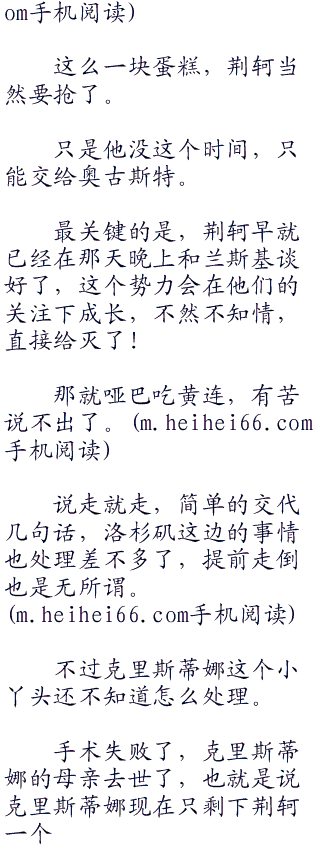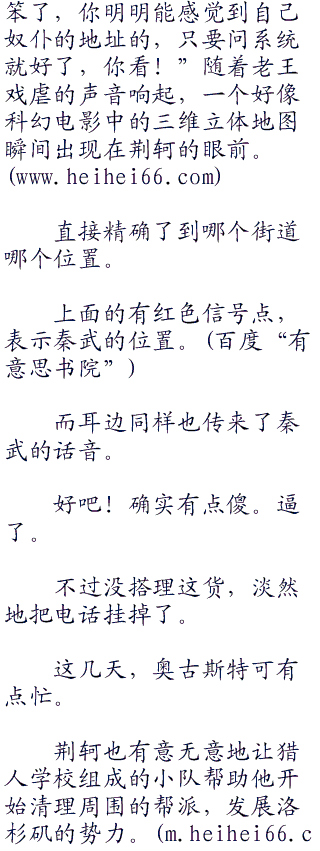 荆轲嘴角抽了抽,对着电话再次说道:“把地址给我!我今天过去一趟。”