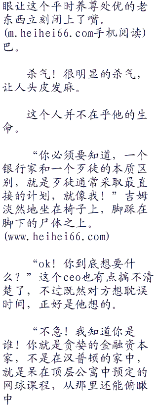 “我不知道你是不是我认识的人,但这样做是完全没有用的...”一个好的销售员就会试图去降低敌人的警戒心还有探询一些东西,这个金融公司ceo明显也是从销售员做上来的,不管在什么时候,人生经验都是非常重要的。