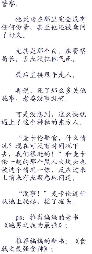 荆轲脸上闪过一丝玩味,和麦卡伦在一起的还有一个黑人壮汉。