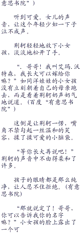 “哇妈妈!妈妈!你在哪里!”一声清晰的小孩子哭声在荆轲的耳边响起。
