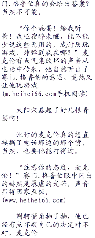 “马修先生,你先包扎一下伤口,这个我会处理好的!请放心,一切都在我的掌控之中,您也看过我的计划。”赛门.格鲁伯立刻彬彬有礼的回道。