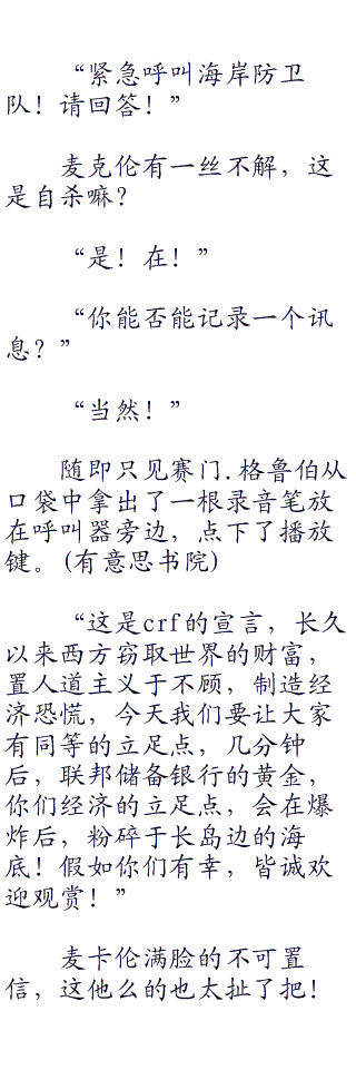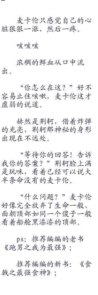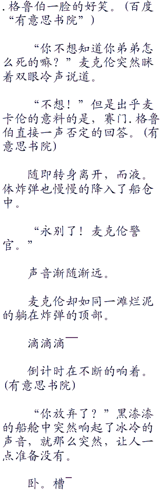 “赛门!学校的炸弹是不是真的?”麦克伦口中不断地冒着鲜血,两眼死死地瞪着赛门.格鲁伯。