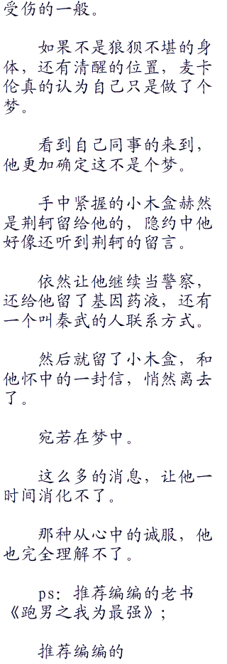 刚刚好上一点的麦卡伦再次濒临死亡,这还是因为大部分冲击力量是荆轲承担下来的结果。