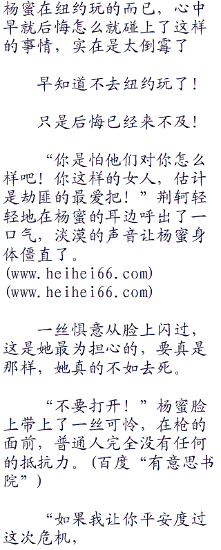 “放开你的臭手!他们有枪,出去死了不要拉上我!”杨蜜一脸的不屑,对于荆轲,她实在没有好脸色。