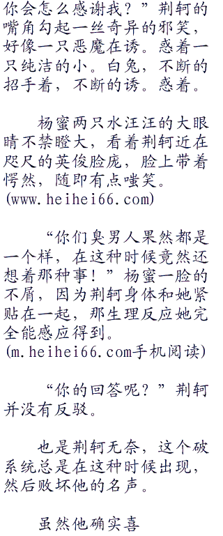 “你害怕了!”荆轲左手握住了那晶莹剔透,宛若玉质一般的下颚,脸上带着邪笑。