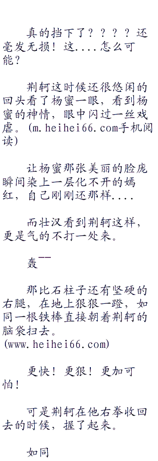 看到荆轲这般,壮汉双眼闪烁着暴虐的光芒,好像已经可以预测到接下来的情景。
