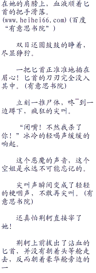 “好啊!那你杀了她!等你杀了她,我再杀你!”荆轲冰冷的声音没有一丝的起伏,平静的让人可怕,让人毛骨悚然。