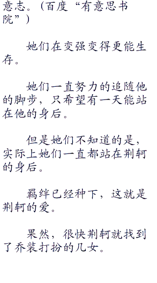 但所有荆轲身边的人都知道,只要荆轲在她们身边,她们永远不会害怕。