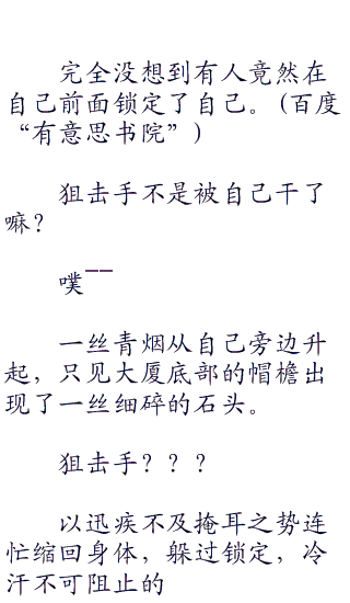“我找到敌人了在前方米远第三幢大厦的楼顶”