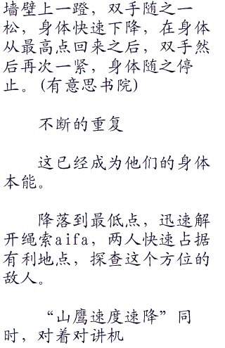 其他两人则是快速来到早已经准备好的绳索,快速扣上锁环,紧急速降。