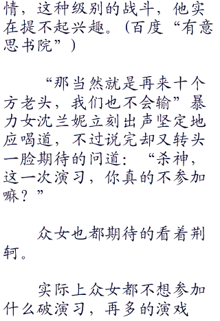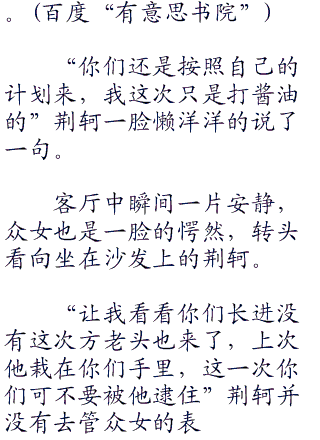 只可惜,她们说的起劲,让她们没预料到的是,荆轲根本没打算出手