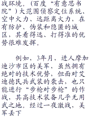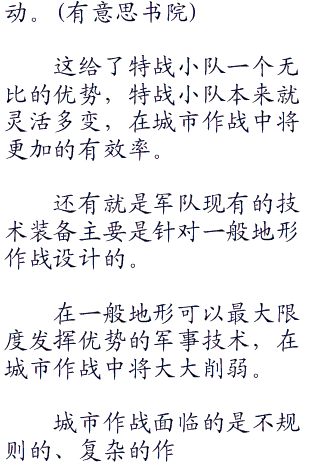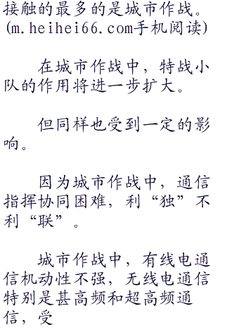 这完全区别于特种兵的丛林作战和山地作战,但却是一个不可逆转的趋势。