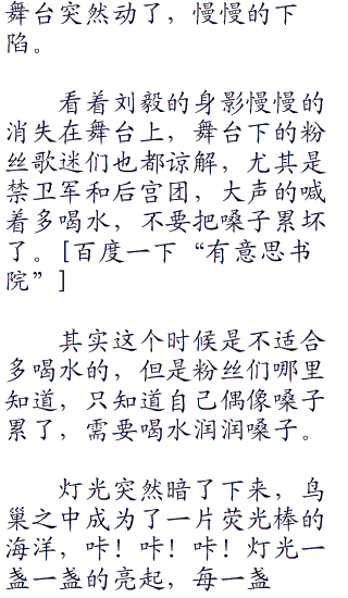 疯狂的呐喊又一次的响起,禁卫军还有后宫团都跟疯了似地,在舞台上看着台下疯狂摇晃的灯光,刘毅心里乐得跟朵花似的,声望值嗖嗖的增长啊,到现在已经三亿六千多万点了。