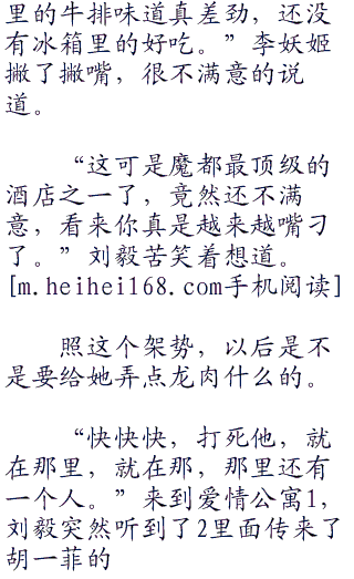 真是太棒了,和刘毅单独相处,还有肉吃,不过这肉味道真差劲,还没有家里的好吃,小狐狸想起了刘毅别墅厨房里的牛排,咽了一口口水,狠狠地咬了一口盘子里的牛排。