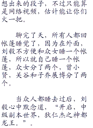 记得系统曾经说过,只要系统升级,就可以将次元世界里面的人物带到现实世界里来,想到自己在那些副本世界里的女人,刘毅立即问道,“系统,系统升级后,是不是就可以将副本世界里的人带到现实中来?”对于副本世界里的那些女人,刘毅自然是十分想念的,也想带到现实中来,过上安定幸福的生活。